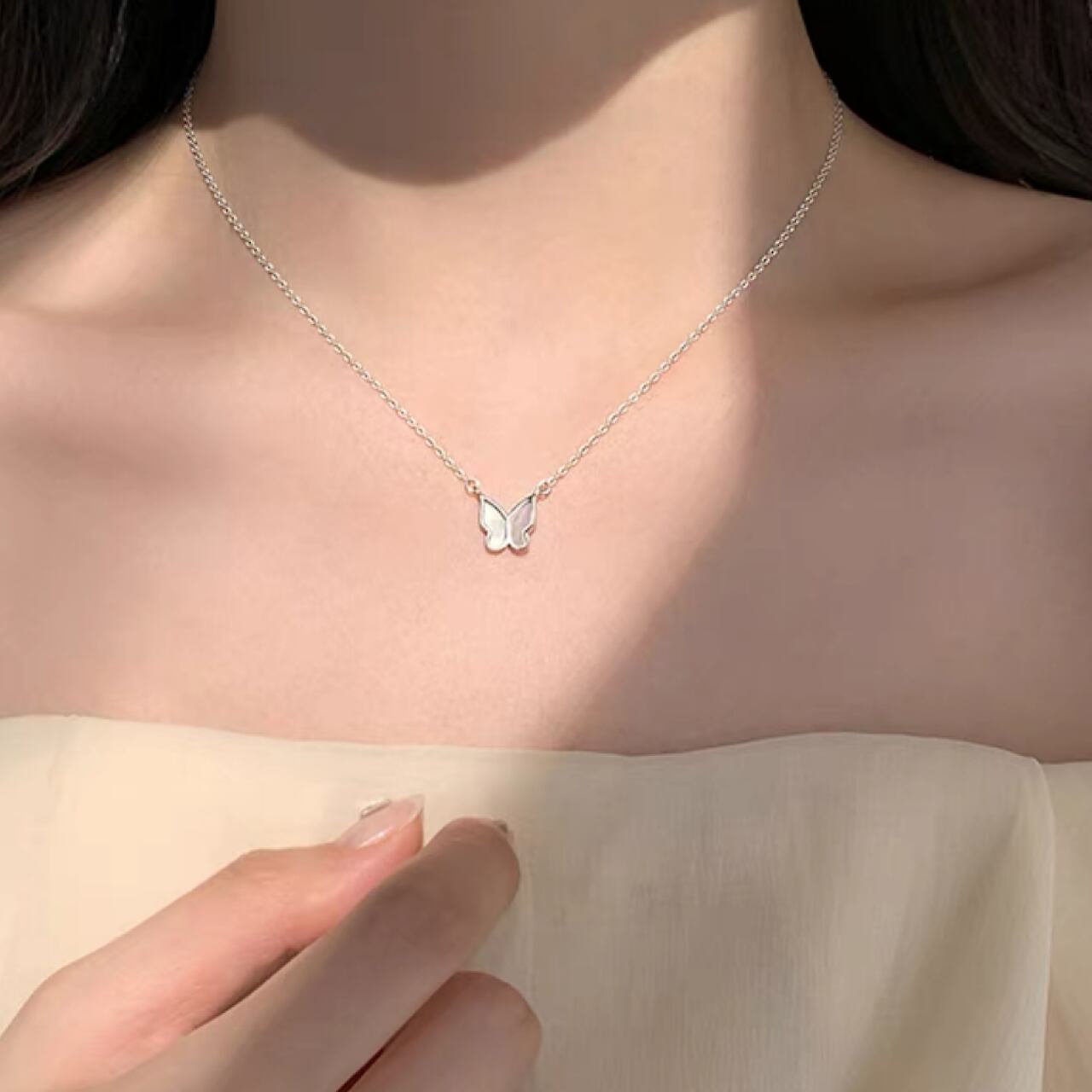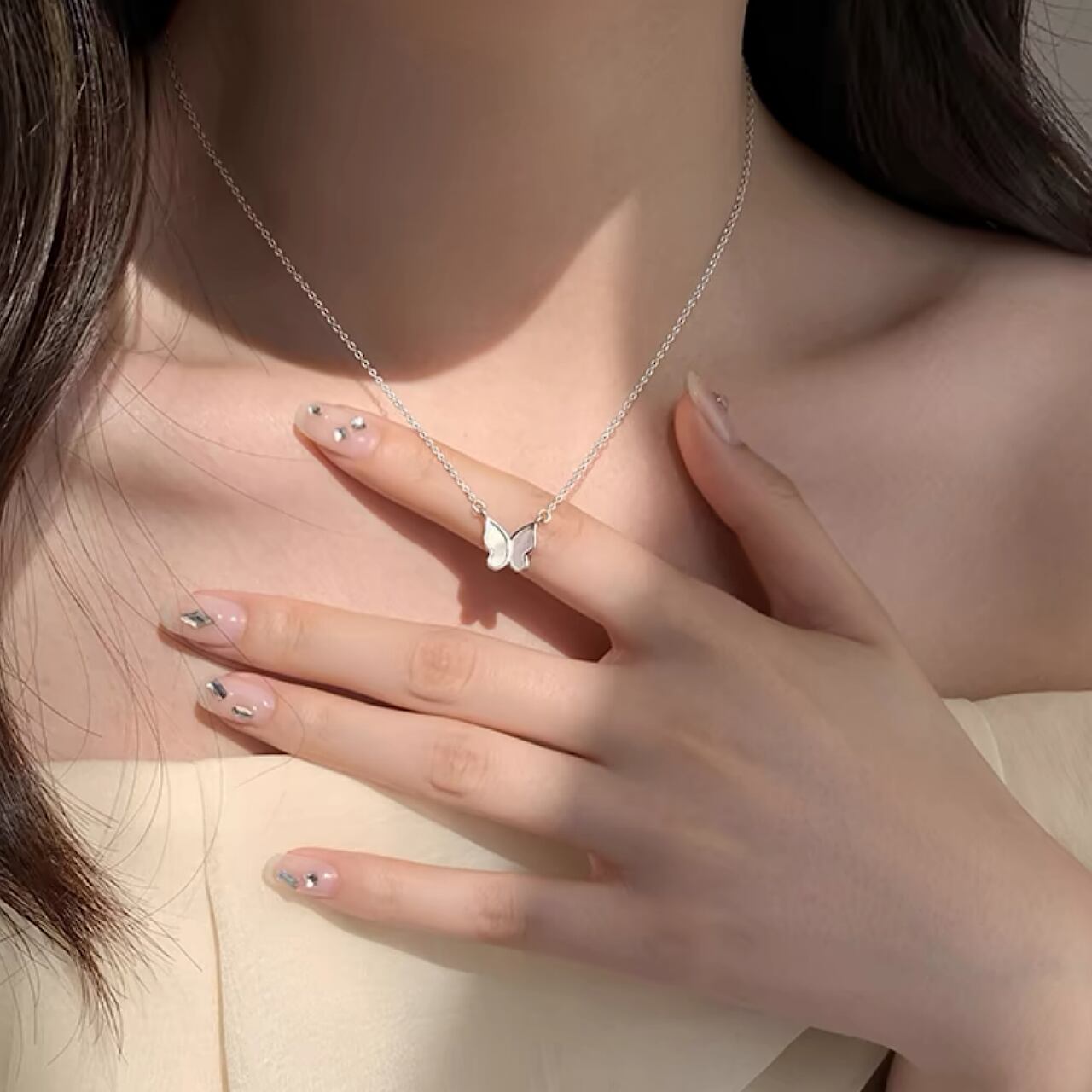 ネックレス かわいい ホワイト 蝶々 ペンダント