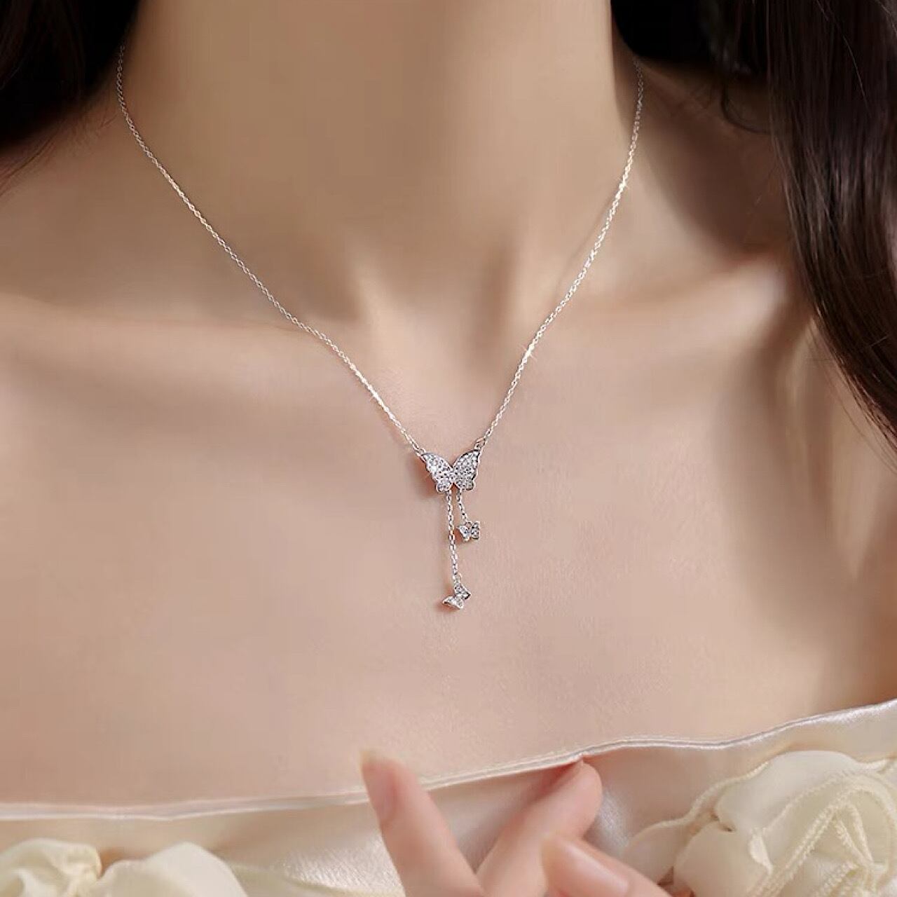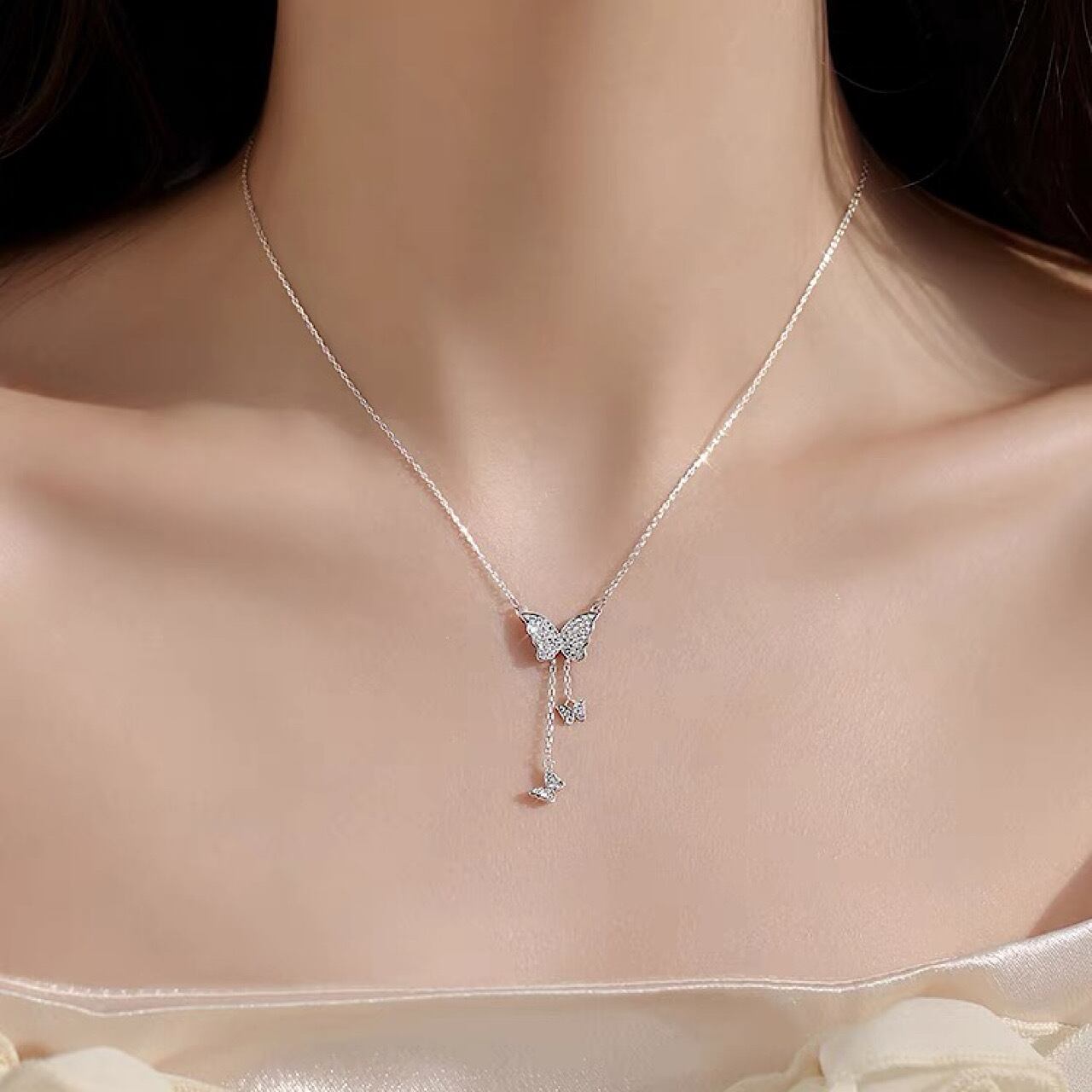 ネックレス おしゃれ トリプル 蝶々 ペンダント