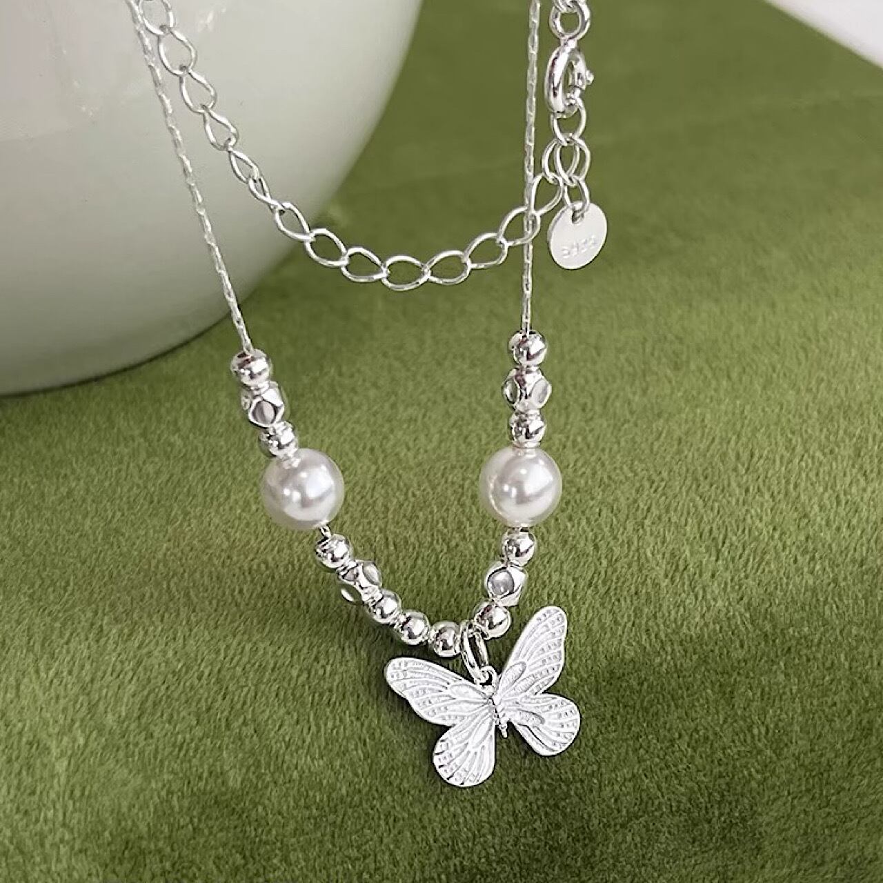 ネックレス おしゃれ 蝶々 真珠 シルバー ペンダント
