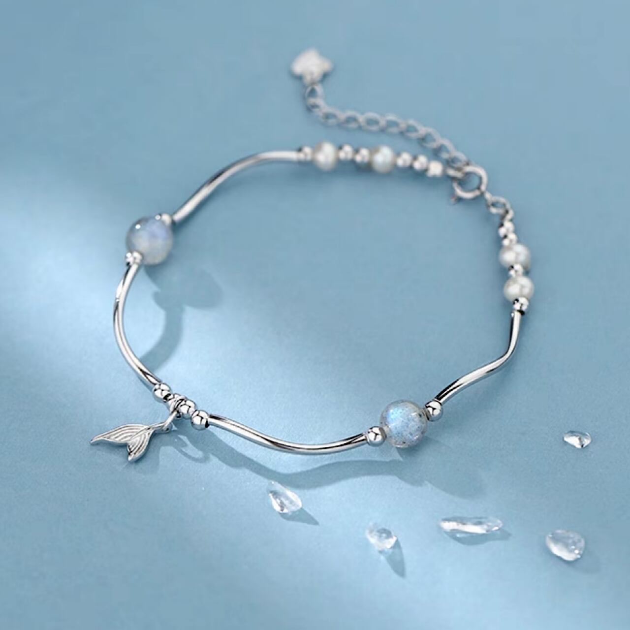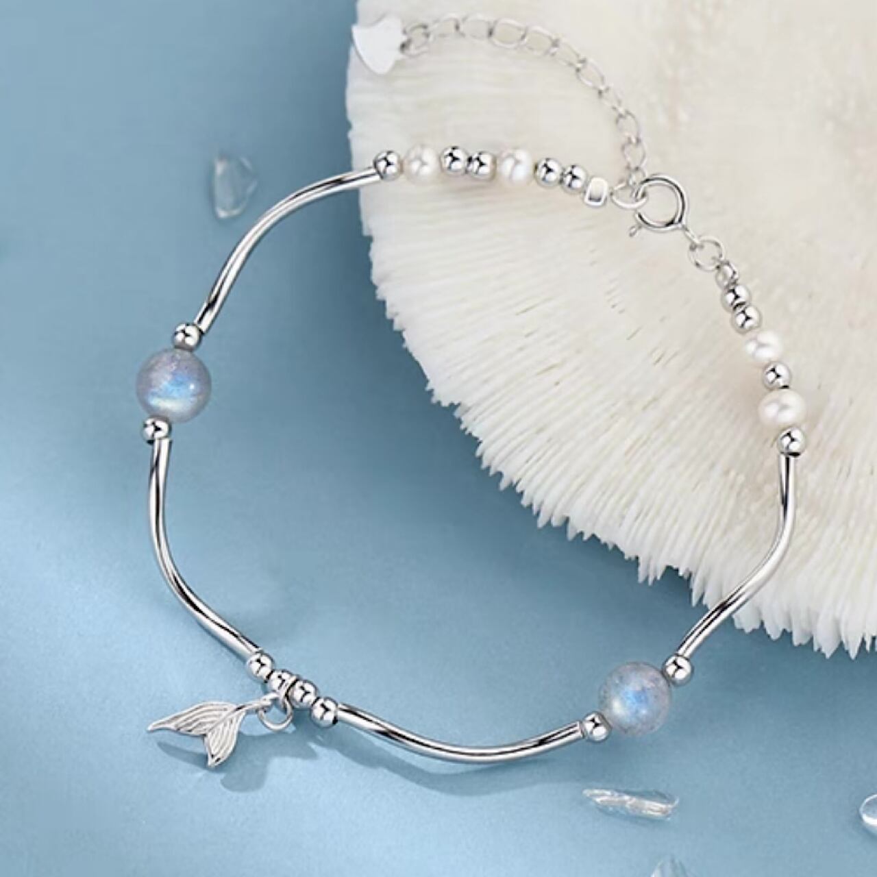 かわいい 海 魚の尻尾 パール シルバー ブレスレット