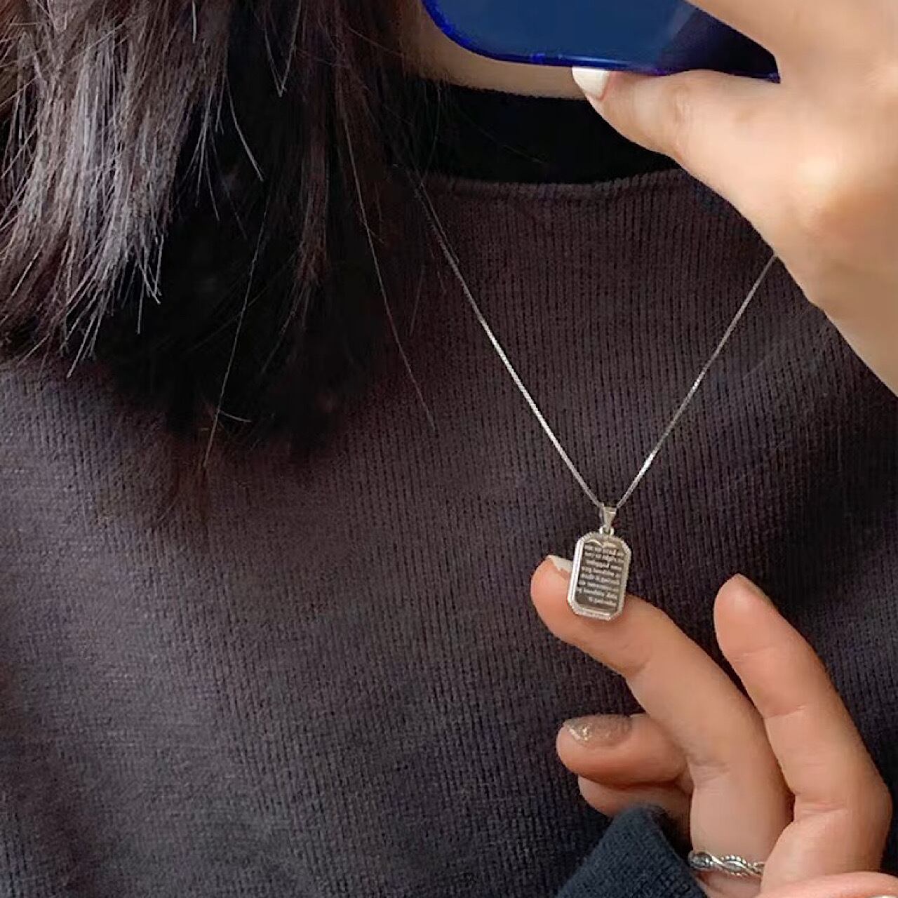 おしゃれ シルバー 板 英文字 ネックレス